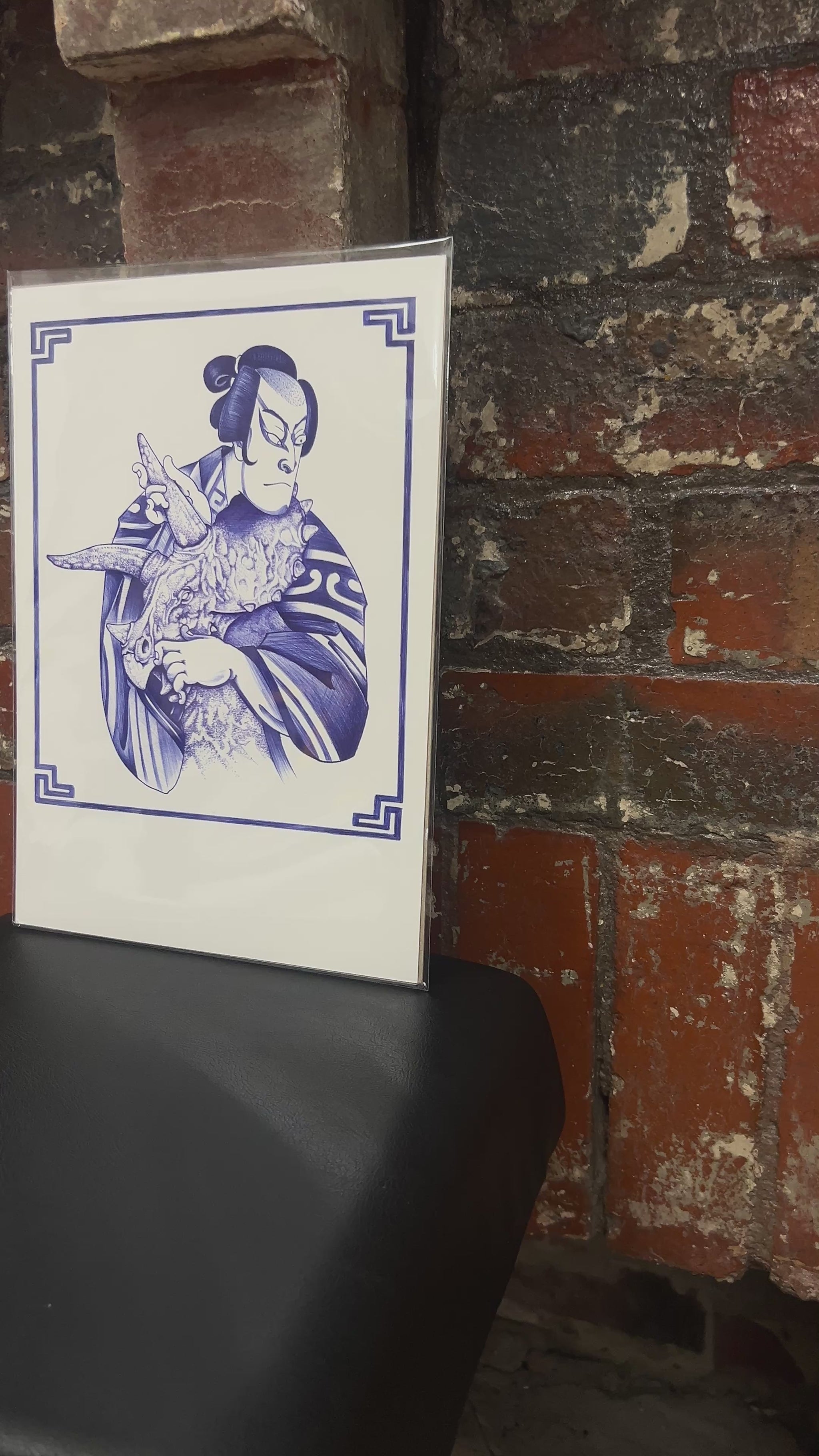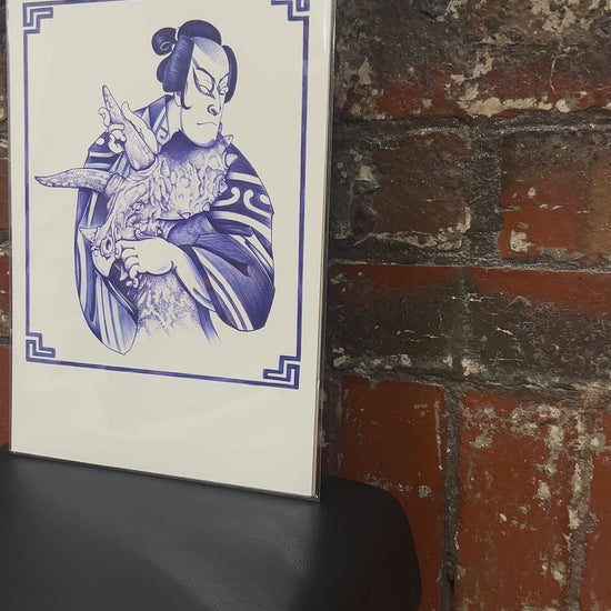 Dino & The Samurai - Blue Ballpoint Print